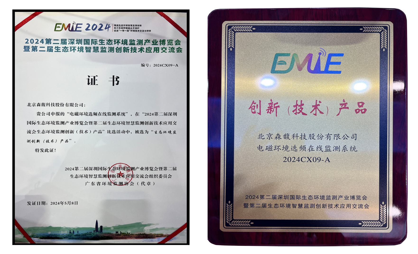 同时,森馥科技自主研发的“OS-8 S选频式电磁环境在线监测系统”在“2024第二届深圳国际生态环境监测产业博览会暨第二届生态环境智慧监测创新技术应用交流会生态环境监测创新(技术)产品”比选活动中,被选为“生态环境监测创新(技术)产品”。