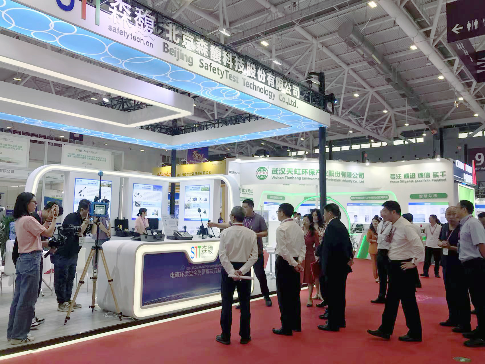 森馥科技展台人潮如涌,创新产品与解决方案吸引了众多观众。工作人员热情地向领导、专家、客户、合作伙伴介绍森馥科技在电磁辐射监测领域的前沿技术产品和创新成果。