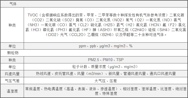 ① 光离子化传感器(PID)检测TVOC及苯、甲苯、二甲苯在内的数十种挥发性有机物;