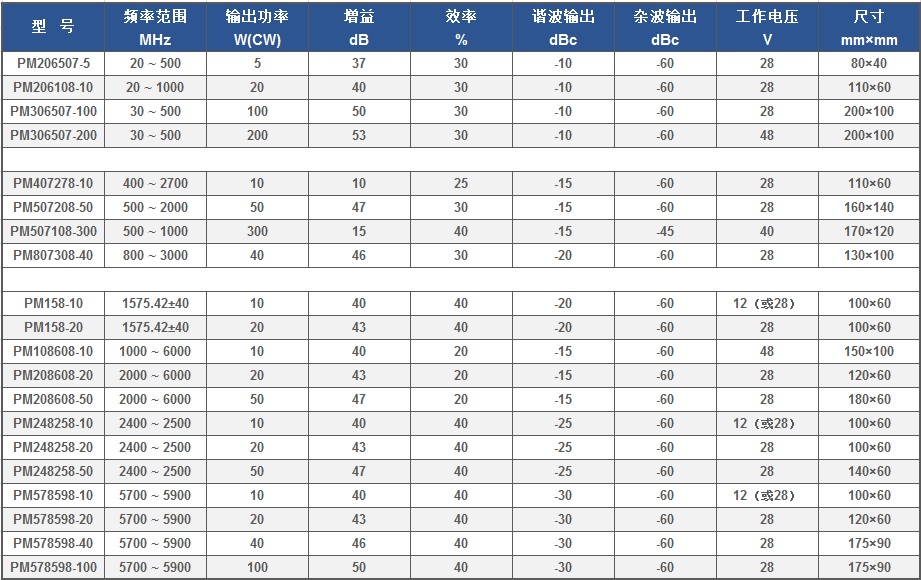 宽工作频带,高功率增益