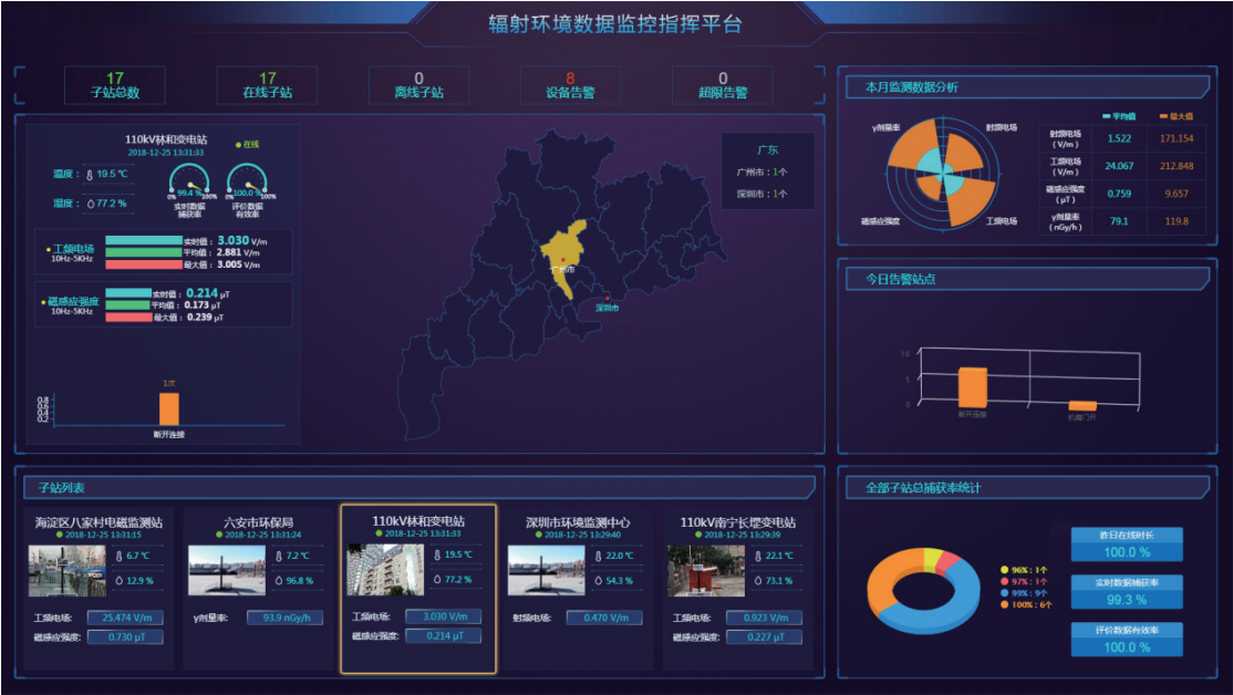 系统由多个电磁环境监测子站、监控中心及数据公示平台组成,其中:
