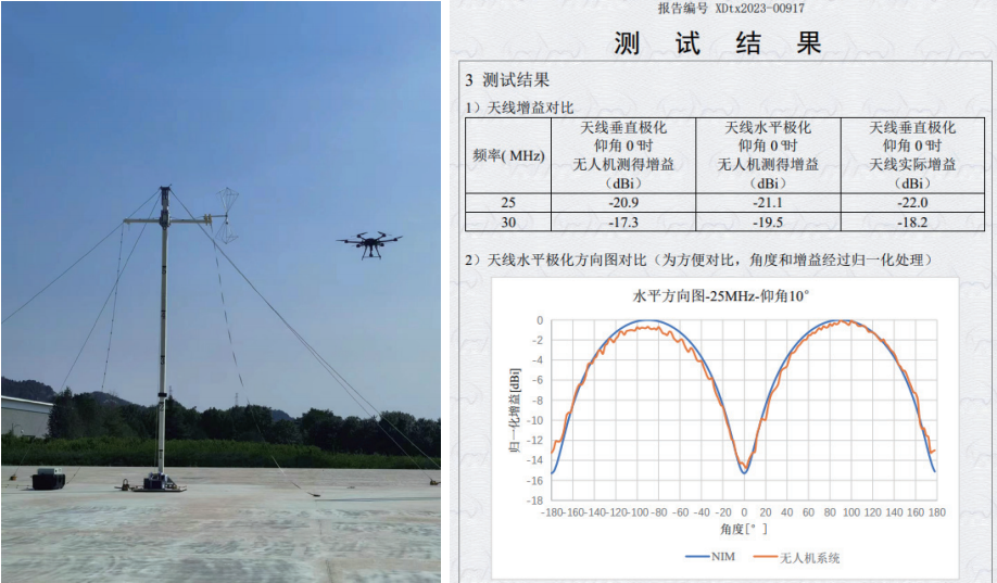 系统通过中国计量院的天线开阔场计量校准,实测水平方向图和垂直方向图均与中国计量院天线场的计算结果高度一致,天线增益误差小于±1.3dB。