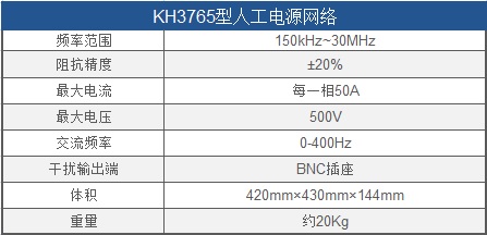KH3765型人工电源网络是我公司新推出的传导干扰测试附件。为了满足市场上对大功率电子产品的EMI测试要求,我公司整合了国内外先进技术,开发出这款三相四线50A的电源网络,其主要特点是:集成度高、性能稳定、操作性强、成套性好。我公司生产的全自动EMI测试接收机或者其他品牌测试接收机配置上此款附件,即可进行大电流传导干扰测试。该产品应用广泛、切换方便,相比市场上同类产品,大大减少了操作步骤,为您的整改工作争取宝贵的时间。本产品还提供一个标准的10A接口,让您的测试更方便。