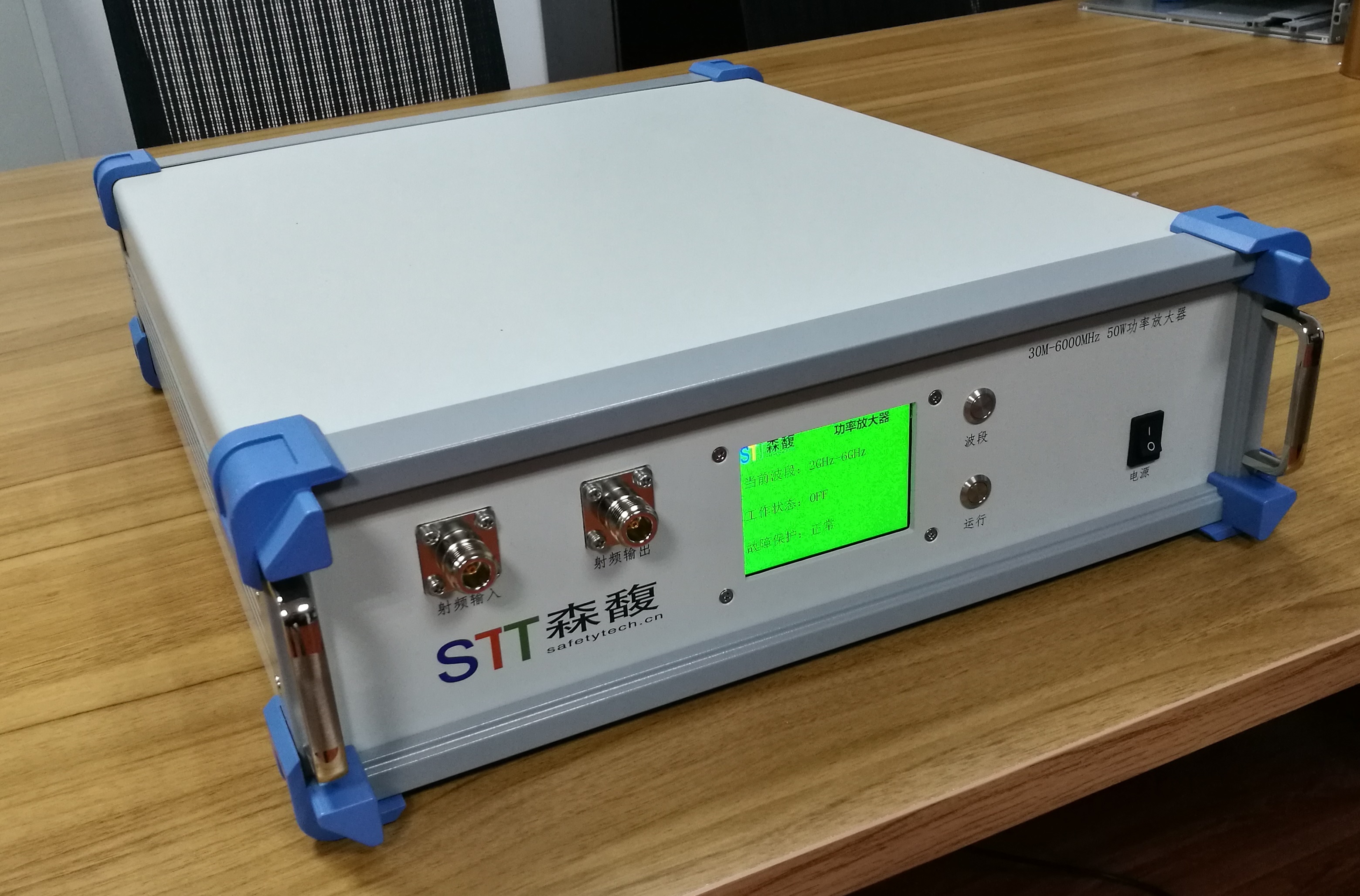 利用射频功率开关集成,以单输入单输出的单台功放的形式,分三个频段覆盖30MHz~500MHz&500MHz~2000MHz&2000MHz~6000MHz的频率范围,结构紧凑,操作方便,便于用户使用。