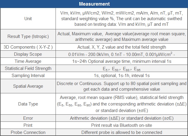 With isotropic probe, SEM-600 can give an accurate response to the electromagnetic field incident at any angle in space and give the values of total field strength and X-Y-Z three dimensions.