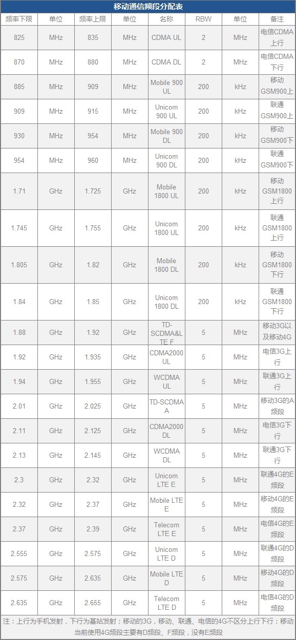 移动通信基站按照发展阶段分为第二代(2G)移动通信基站、第三代(3G)移动通信基站、第四代(4G)移动通信基站和第五代(5G)移动通信基站,其中2G基站按照通信体制分为GSM和CDMA两种,中国移动和中国联通的2G基站均为GSM基站,其中GSM900频段和GSM1800频段,中国电信的2G基站为CDMA基站;联通3G基站采用WCDMA体制,移动3G基站采用TD-SCDMA体制,电信的3G基站为CDMA2000体制;中国移动的4G基站采用了TD-LTE机制,电信和联通的4G基站采用了FDD-LTE机制。详见下表: