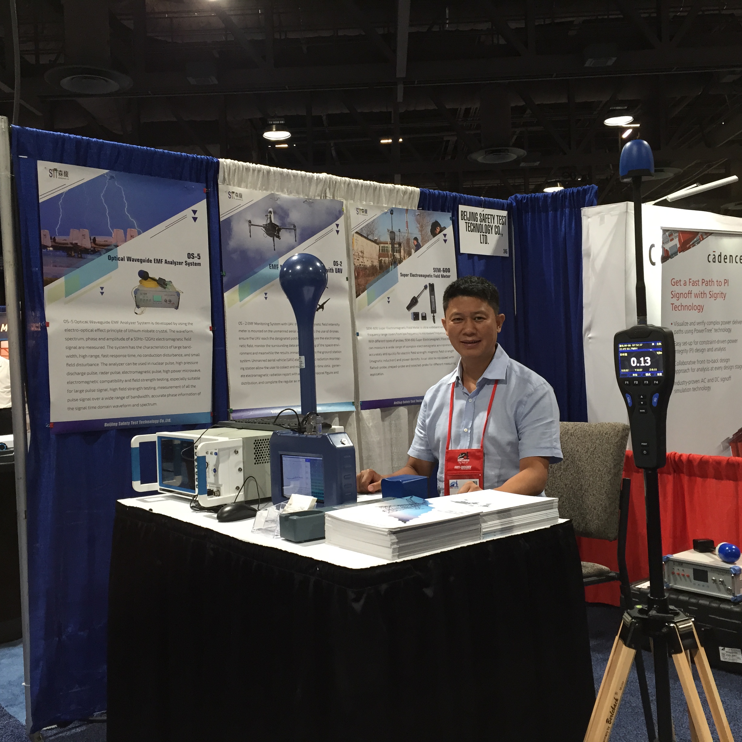 2018年7月30日-8月3日,森馥科技应邀参加在美国加州长滩举行的2018年IEEE EMC+SIPI电磁兼容展,我公司董事长朱琨亲自带队,携带我公司最新的产品OS-2电磁环境监测无人机、OS-4电磁环境选频分析仪、KH3938B无线电干扰接收机、OS-5光波导电磁场测量系统、SEM-600电磁辐射分析仪亮相了这一年度全球电磁兼容领域的盛会。我公司的OS-2电磁环境监测无人机、OS-4电磁环境选频分析仪及SEM-600电磁辐射分析仪获得了参展客户的高度认可,有来自美国、澳大利亚等地的客户直接表达了采购的意向。这是森馥科技的产品再次走出国门,在世界舞台上的亮相,展示中国自主的电磁环境监测技术。新的电磁环境监测及电磁辐射监测技术手段和产品获得了各国专家及客户的认可!在应用层面走在了全球的前列。扛起了中国自主技术电磁辐射分析仪的旗帜!