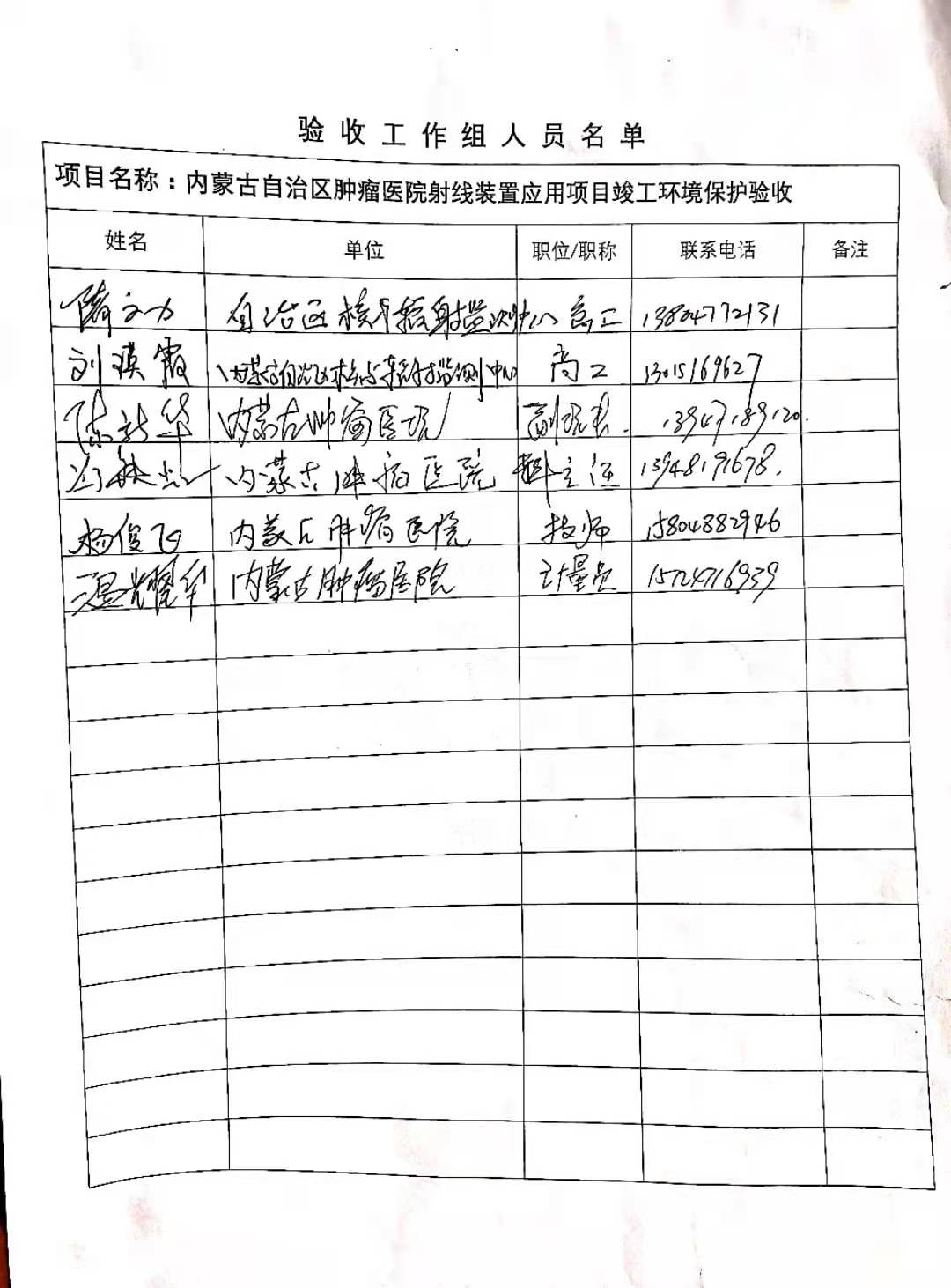 项目名称:内蒙古自治区肿瘤医院射线装置应用项目竣工环境保护验收;